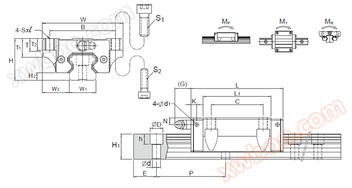 | Modelul | Dimensiuni de alunecare (mm) | Sarcina nominală de bază | Permite momentul static | Greutate | ||||||||||
